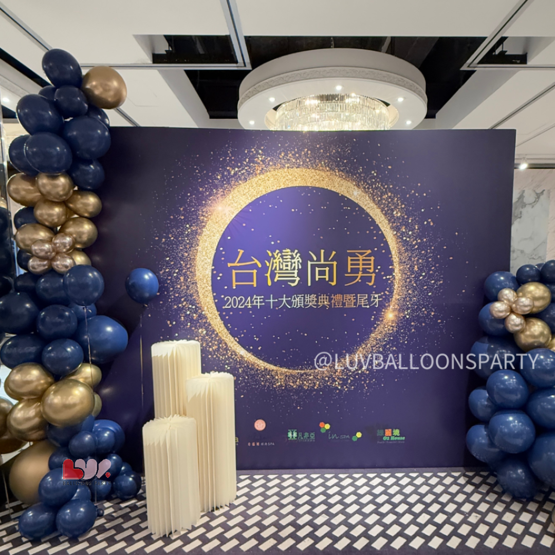 以深邃午夜藍為主軸,結合金色光環與流線氣球設計,