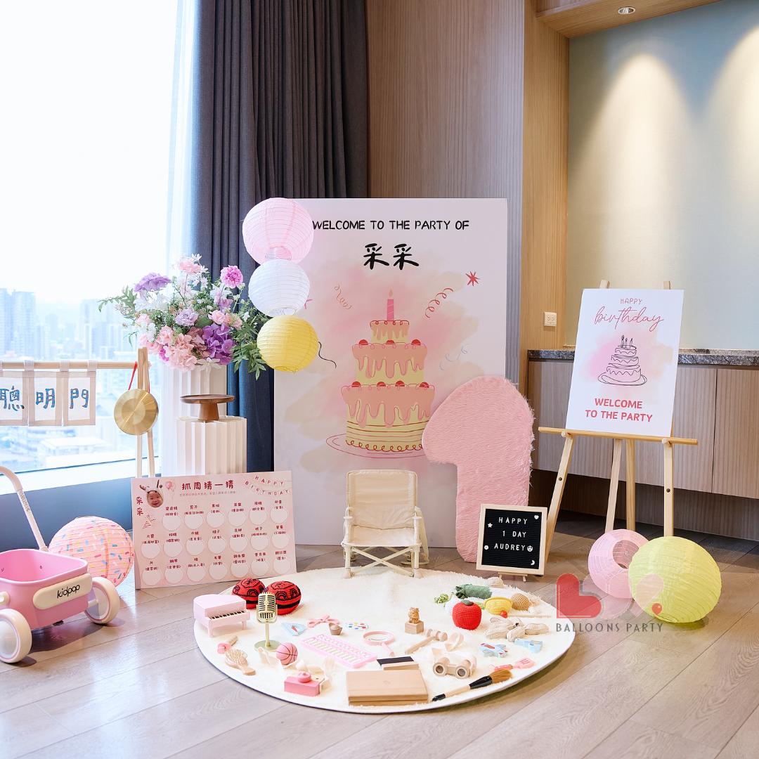 抓周佈置|粉嫩童話